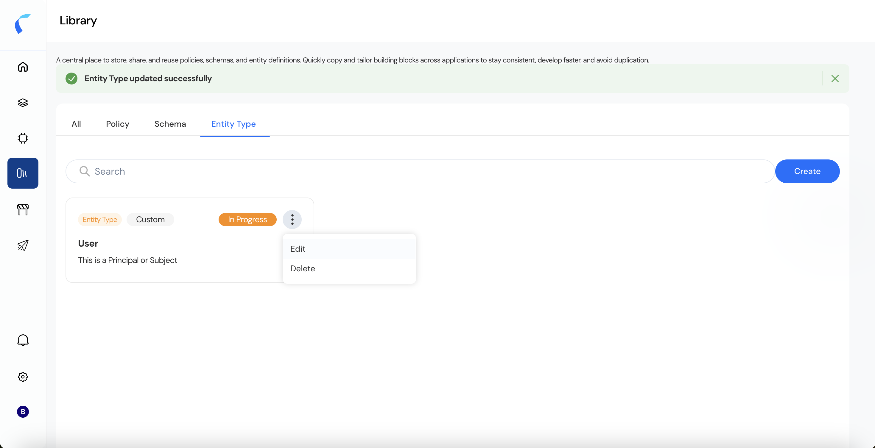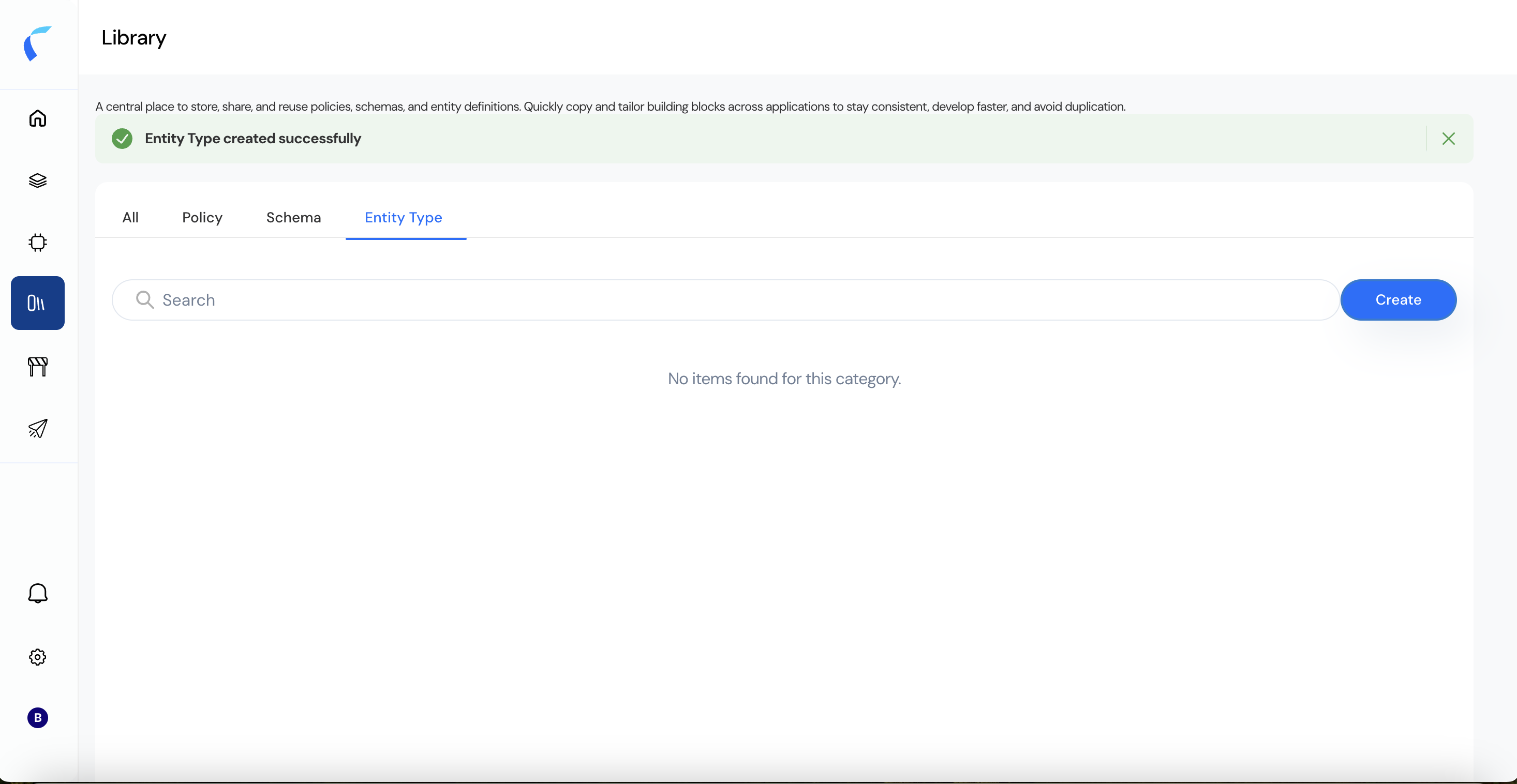 Building Policies and Schemas in the Library depends on predefined Entity Types. Ensure Entity Types are defined before linking them in schemas or policies.