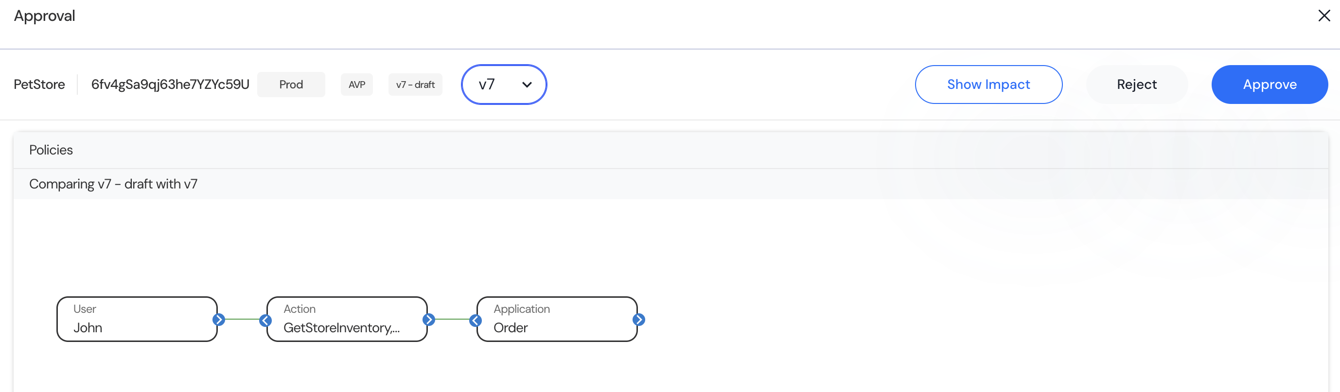 Allows the reviewer to view potential access impact or downstream effects of the proposed policy change. - Approve: